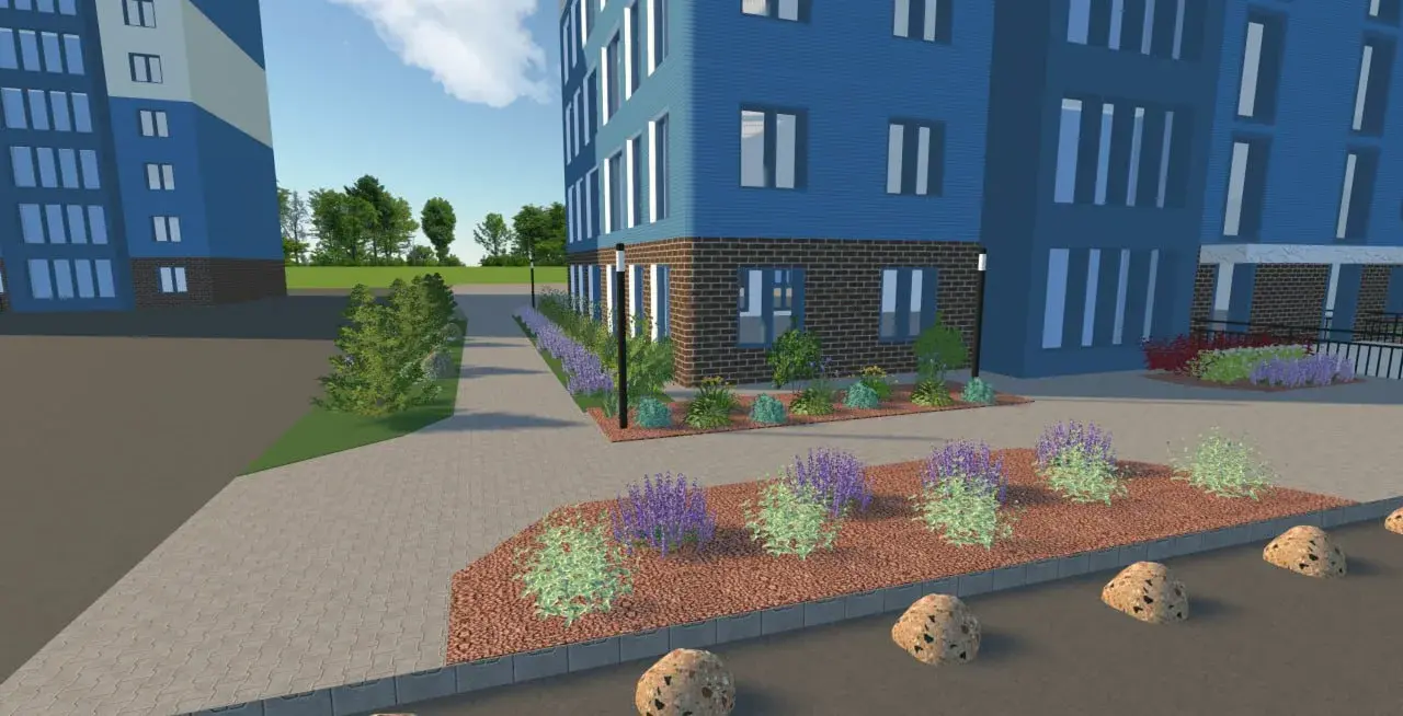 Заказать ландшафтный дизайн озеленения жилого комплекса ЖК, новостройки, двора многоэтажного дома в г Чита, Улан-Удэ, Иркутск, Якутск, Благовещенск 8 (914) 148-43-88 Светлана: