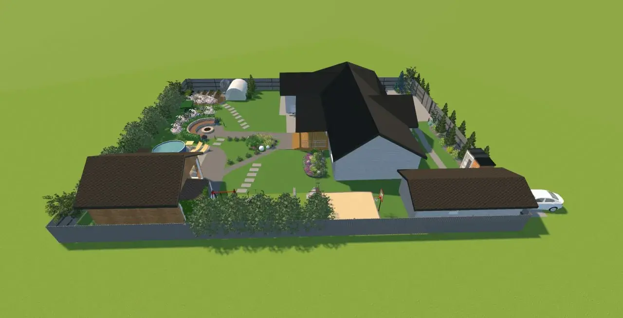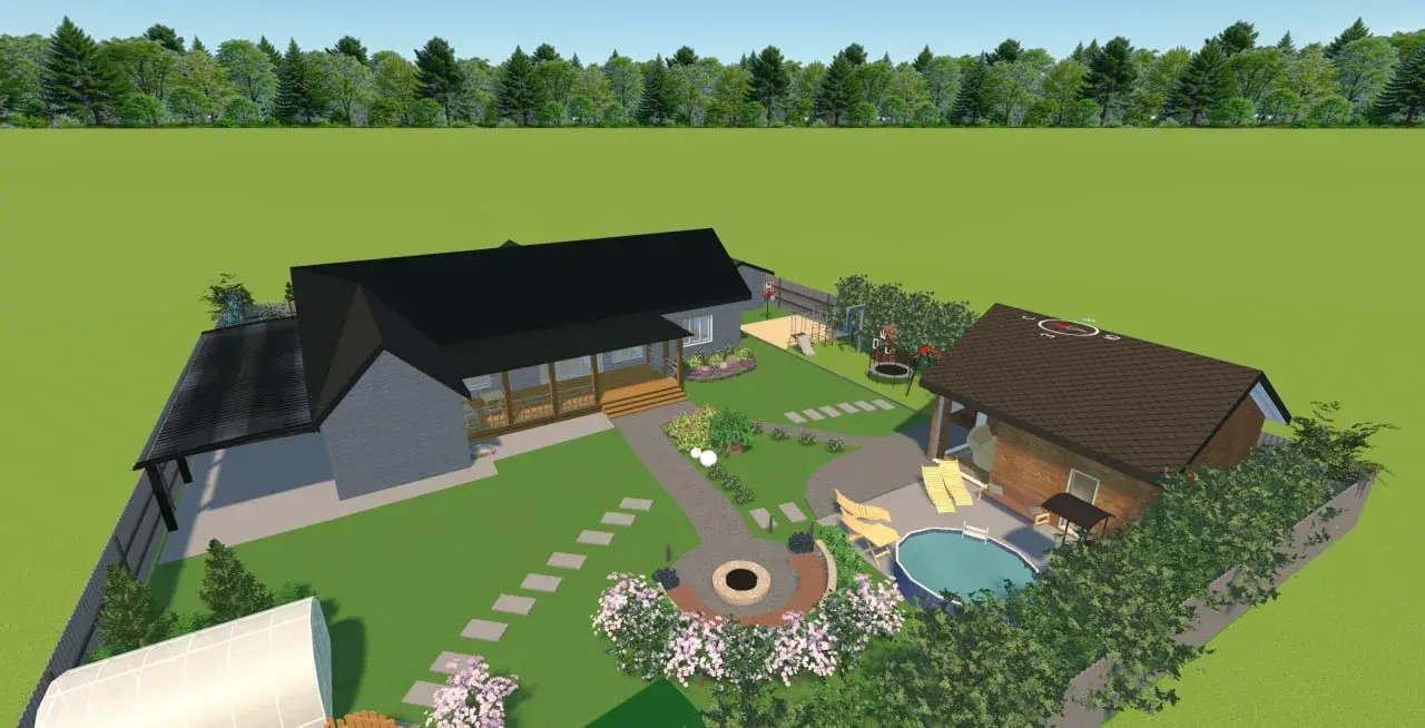 5. Выполним реалистичную 3D визуализацию ландшафтного дизайн проекта + прогулку, чтобы вы могли оценить результат.